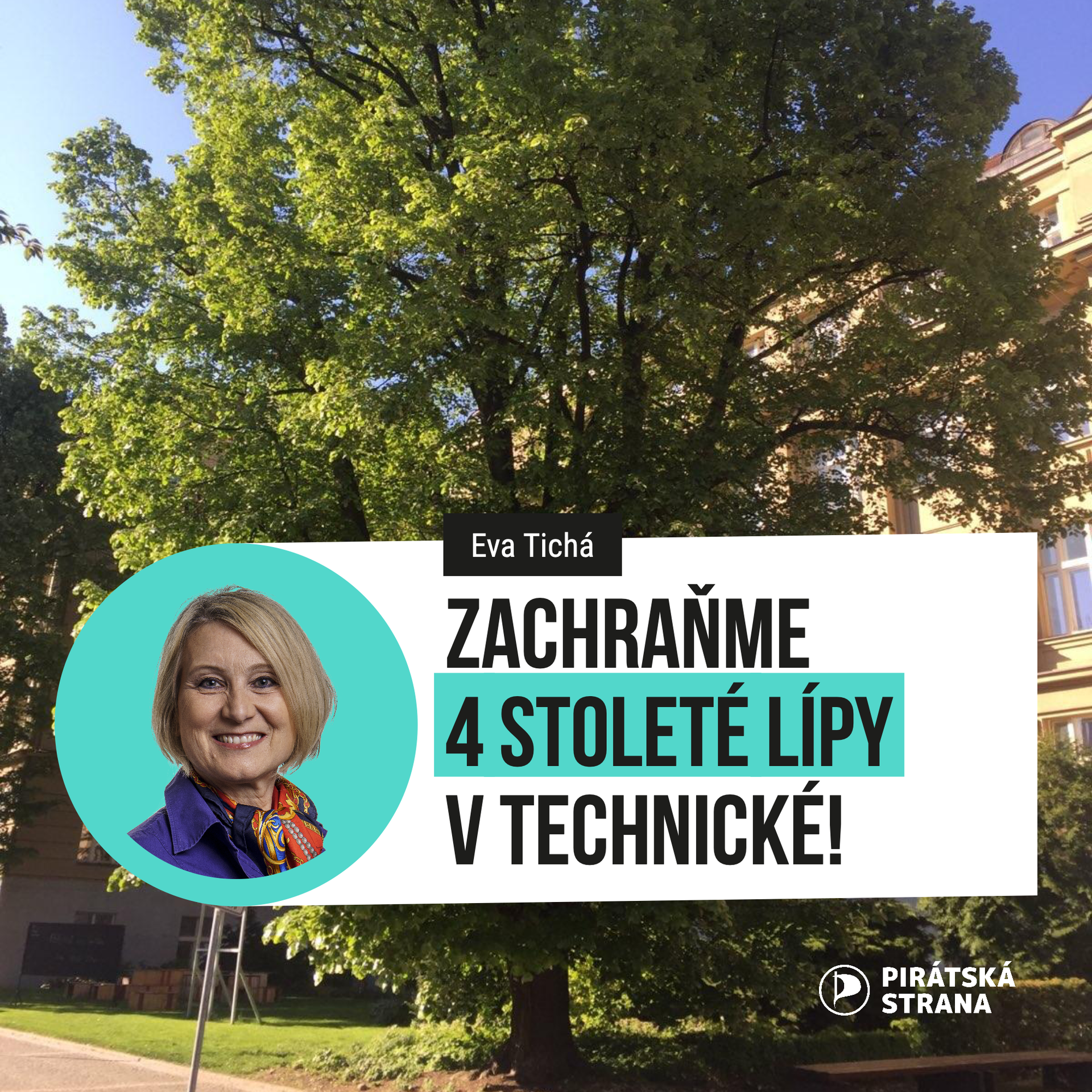 “Piráti jsou proti pokácení stoletých lip v Technické a usilují o jejich záchranu, neboť lípy spoluutvářejí genius loci a mají nenahraditelný přínos pro životní prostředí. Také z výsledků dvou odborných posudků vyplývá možnost lípy zachovat s perspektivou ještě 20-30 let života oproti třetímu, který je navrhuje co nejdříve pokácet,” brání lípy zastupitelka MČ Praha 6 Eva Tichá. Jen pro představu. Strom rostoucí 50 let ve městě je přínosem vyčíslitelným až na 8 mil. Kč. Přispívá nám produkcí kyslíku, pohlcováním CO2, odpařováním a recyklováním vody, zadržováním vláhy v půdě, zachytává polétavý prach, zabraňuje erozi, obohacuje půdu o živiny, pohlcuje a tlumí hluk, slouží jako úkryt pro živočichy a plní i funkci potravního řetězce.